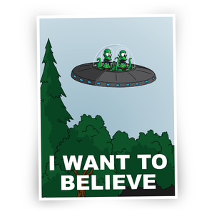 We could all use something to believe in. I think Mulder wants to believe. Scully would be skeptical, but she'd come around. BIG 4" x 5.33" sticker, outdoor vinyl.